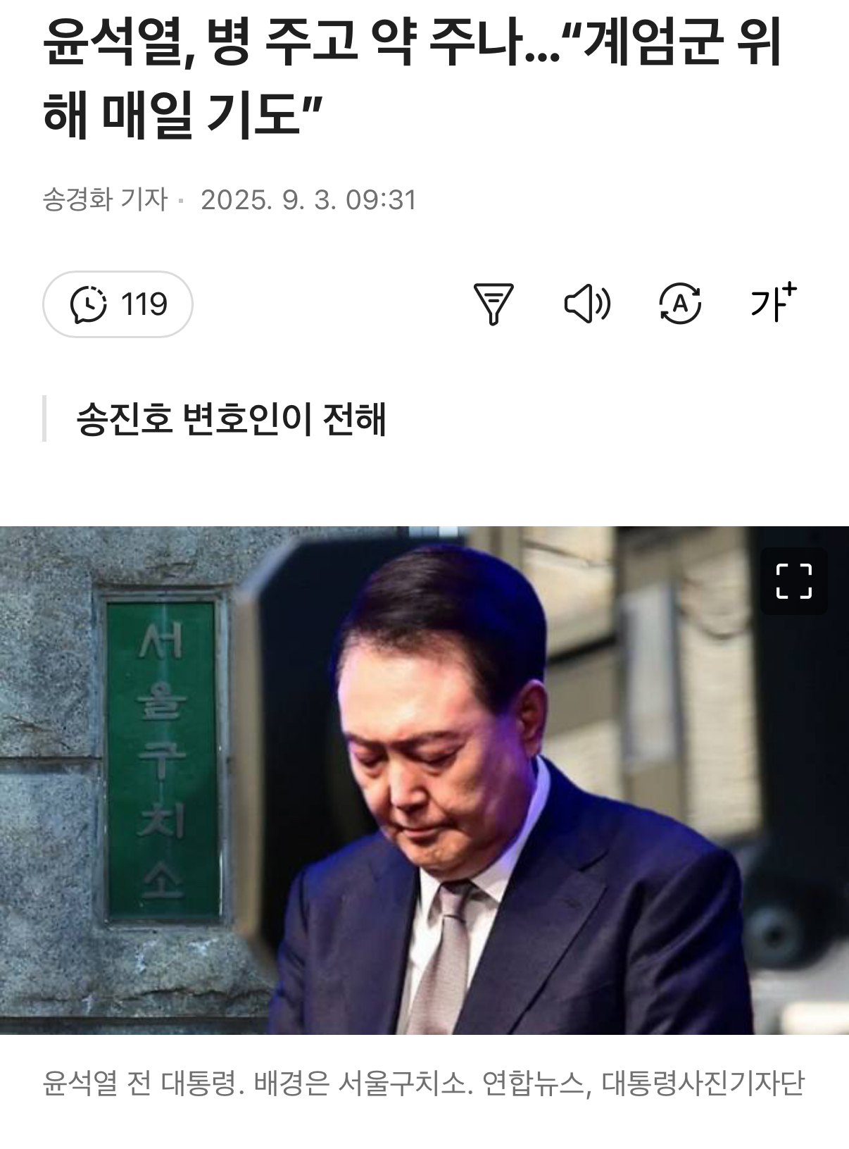 尹✔️ 병주고 약주나 "계엄군 위해 매일 기도" News2025. 9. 3. 10:05