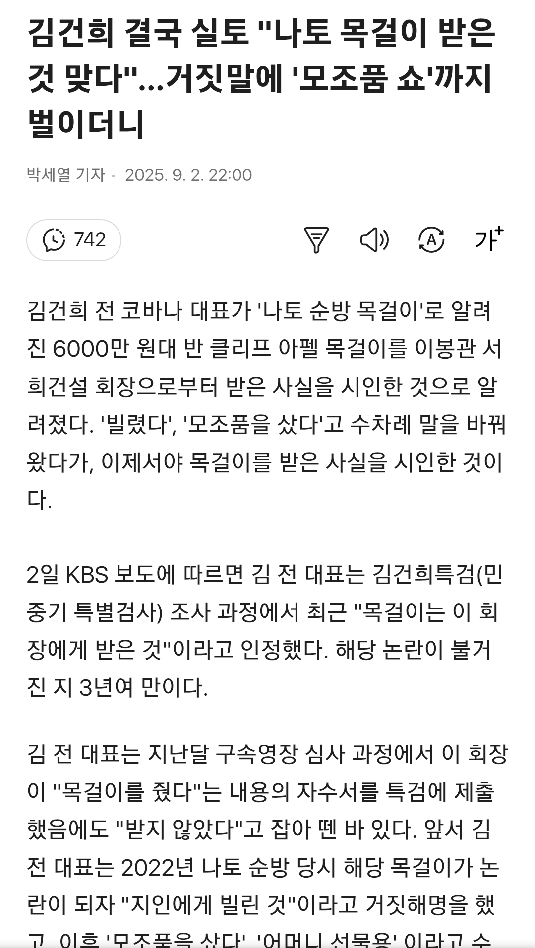김건희, "NATO 목걸이 받은 것 맞다." News2025. 9. 3. 16:39