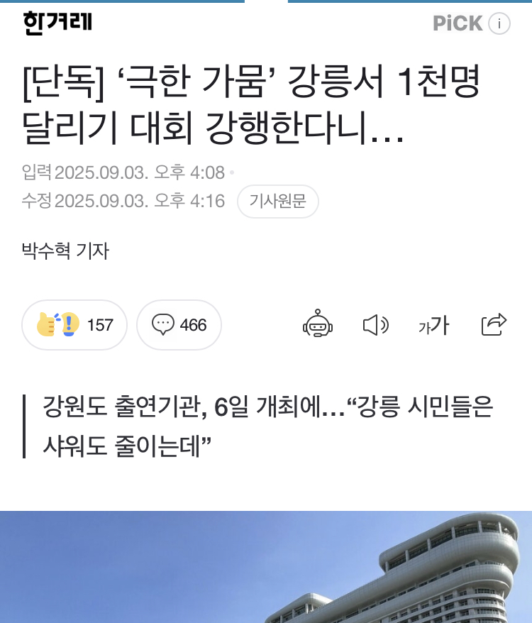 극한 가뭄, 강릉서 1천명 달리기 대회 강행 News2025. 9. 4. 04:30