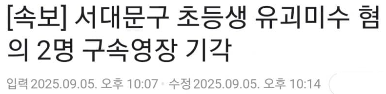 서대문구 초등생 여아유괴미수혐의 2명 구속영장 기각 News2025. 9. 5. 23:16