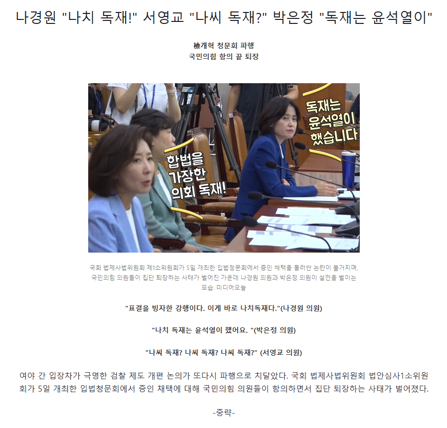 나경원 "나치 독재!" 서영교 "나씨 독재?" 박은정 "독재는 윤석열이" News2025. 9. 5. 23:26