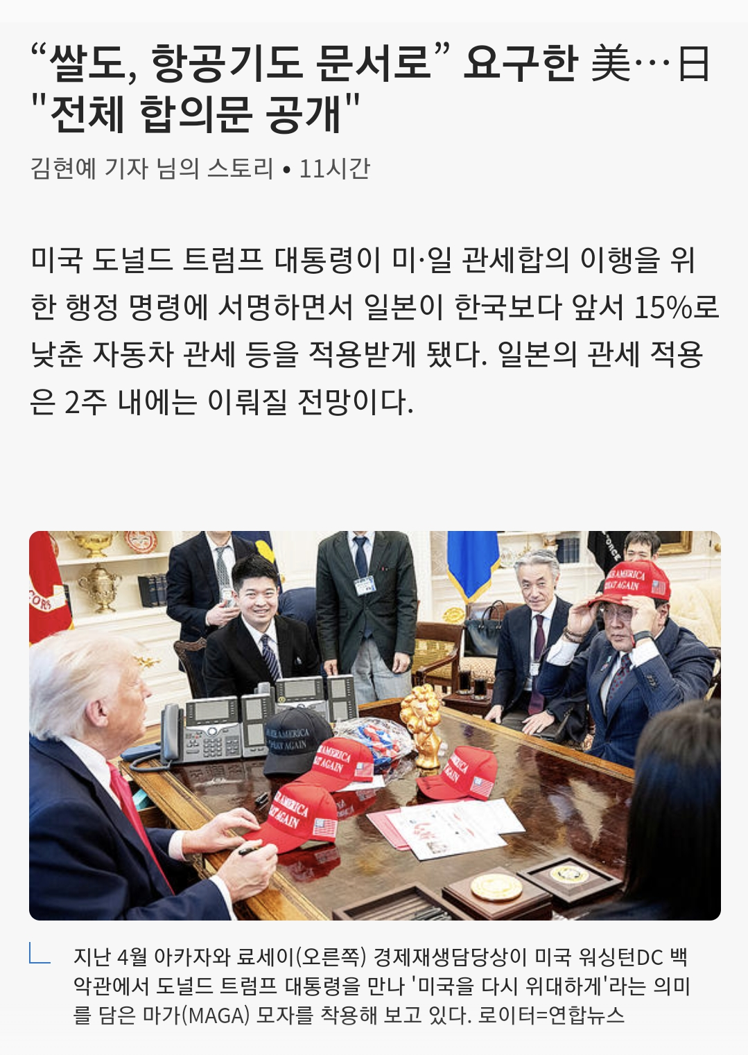 쌀도, 항공기도 문서로” 요구한 美…日 "전체 합의문 공개" News2025. 9. 6. 00:26