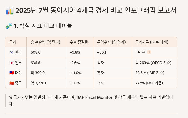 2025년 7월 한국, 일본, 대만, 중국의 수출 및 무역수지 현황 News2025. 9. 9. 03:31