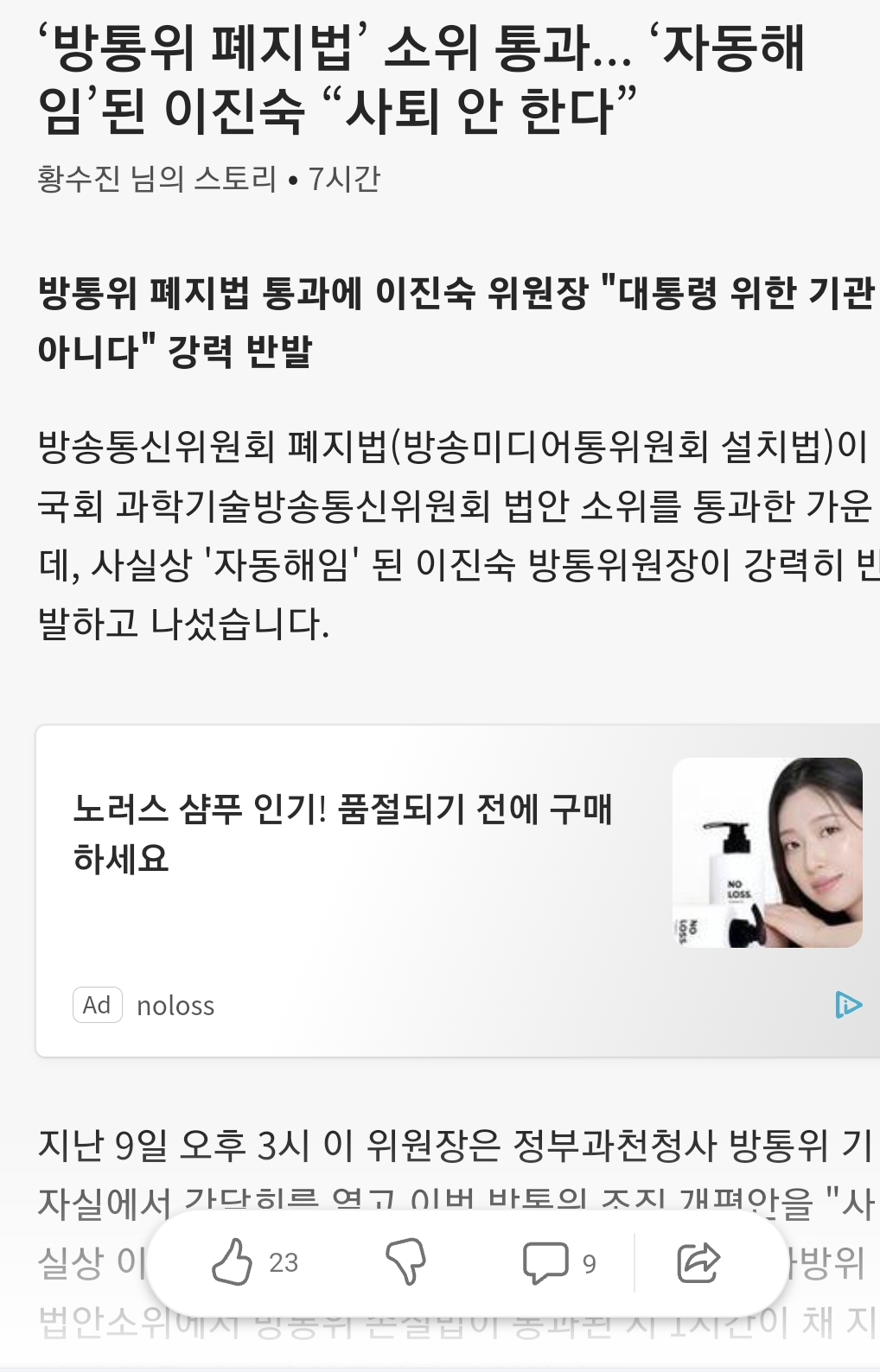 방송통신위원회 폐지법(방송미디어통위원회 설치법)이 국회 과학기술방송통신위원회 법안 소위를 통과한 가운데, 사실상 '자동해임' 된 이진숙 방통위원장이 강력히 반발하고 나섰습니다.