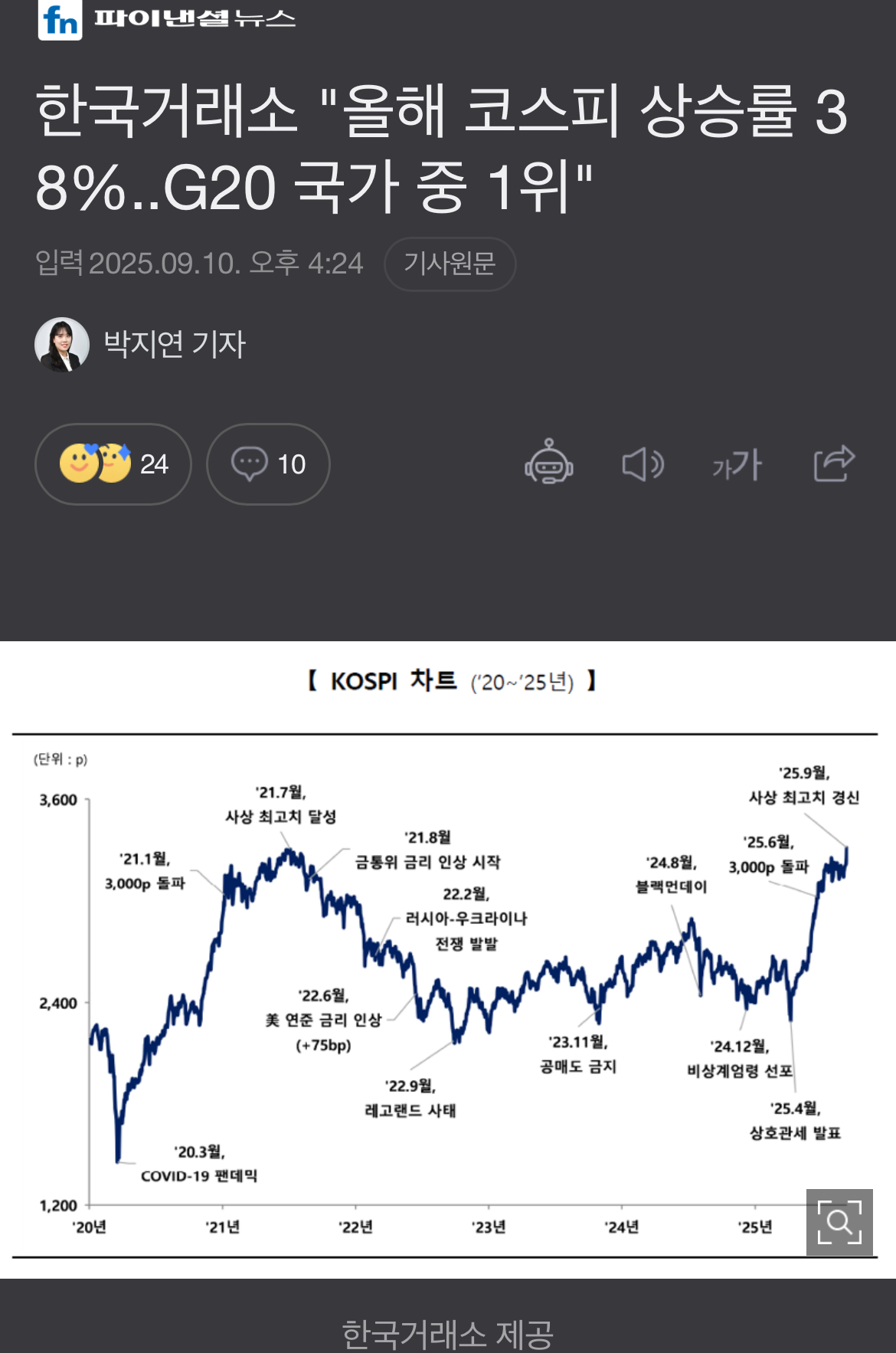 이재명✔️ 100일, 한국거래소 "올해 코스피 상승률 38%..G20 국가 중 1위" News2025. 9. 10. 17:44
