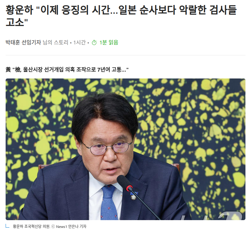 황운하 "이제 응징의 시간…일본 순사보다 악랄한 검사들 고소" News2025. 9. 12. 12:31