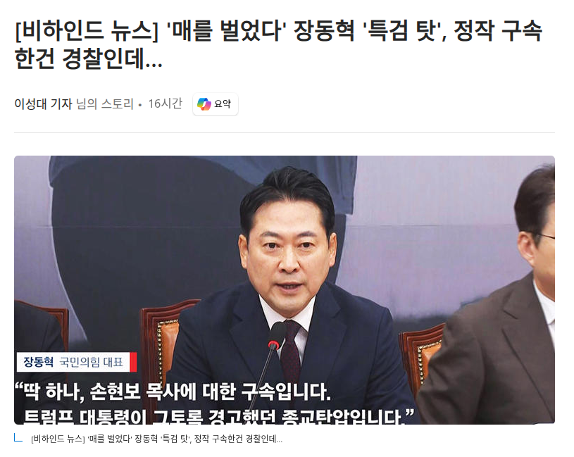 [비하인드 뉴스] '매를 벌었다' 장동혁 '특검 탓', 정작 구속한건 경찰인데…