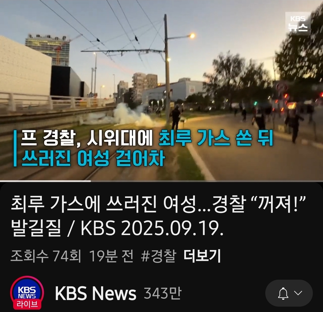 최루가스에 쓰러진 여성 발로 걷어 차는 경찰 News2025. 9. 19. 13:37
