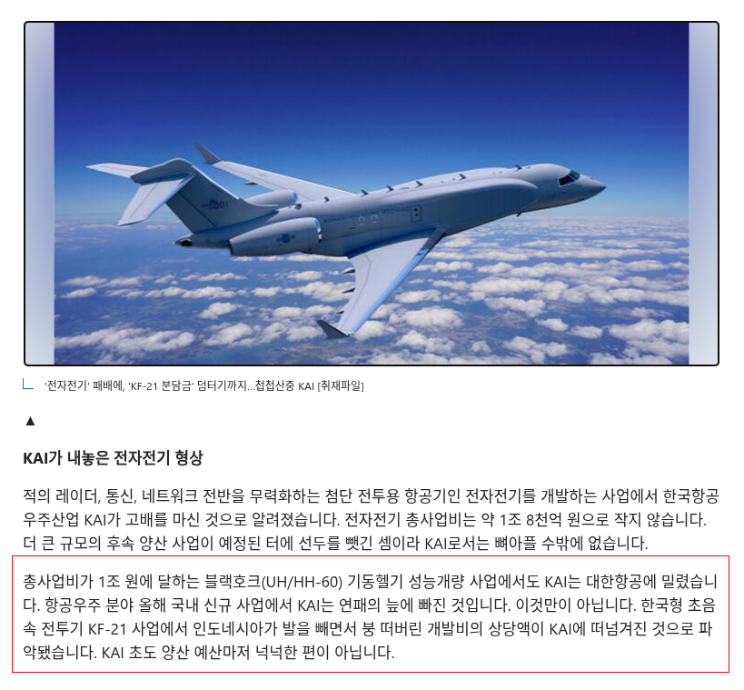 KAI, "블랙호크 이어 전자전기에서도 대한항공에 고배" News2025. 9. 22. 11:16
