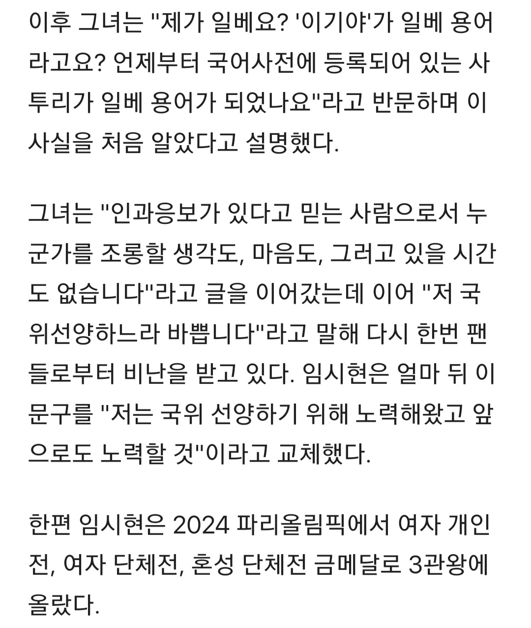일베 용어 사용' 양궁 임시현 "국위선양 하느라 바빠"