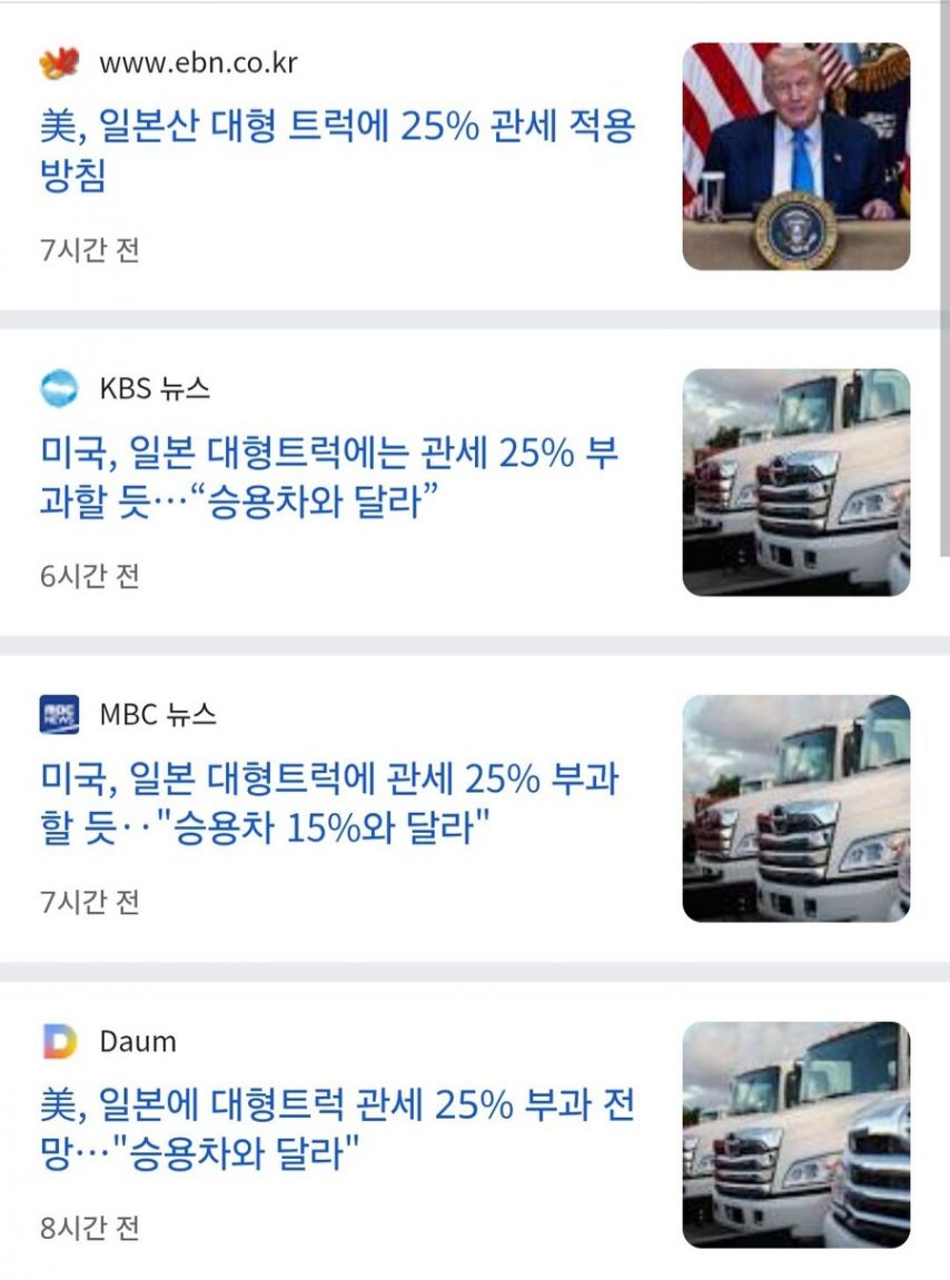 도널드 트럼프 미국 정부가 자동차 관세 협상을 이미 끝낸 일본 정부에 대형 트럭은 별도 관세를 부과할 것이라고 일본 언론이 보도했다. 일본 아사히신문은 28일 트럼프 정부가 다음 달 1일부터