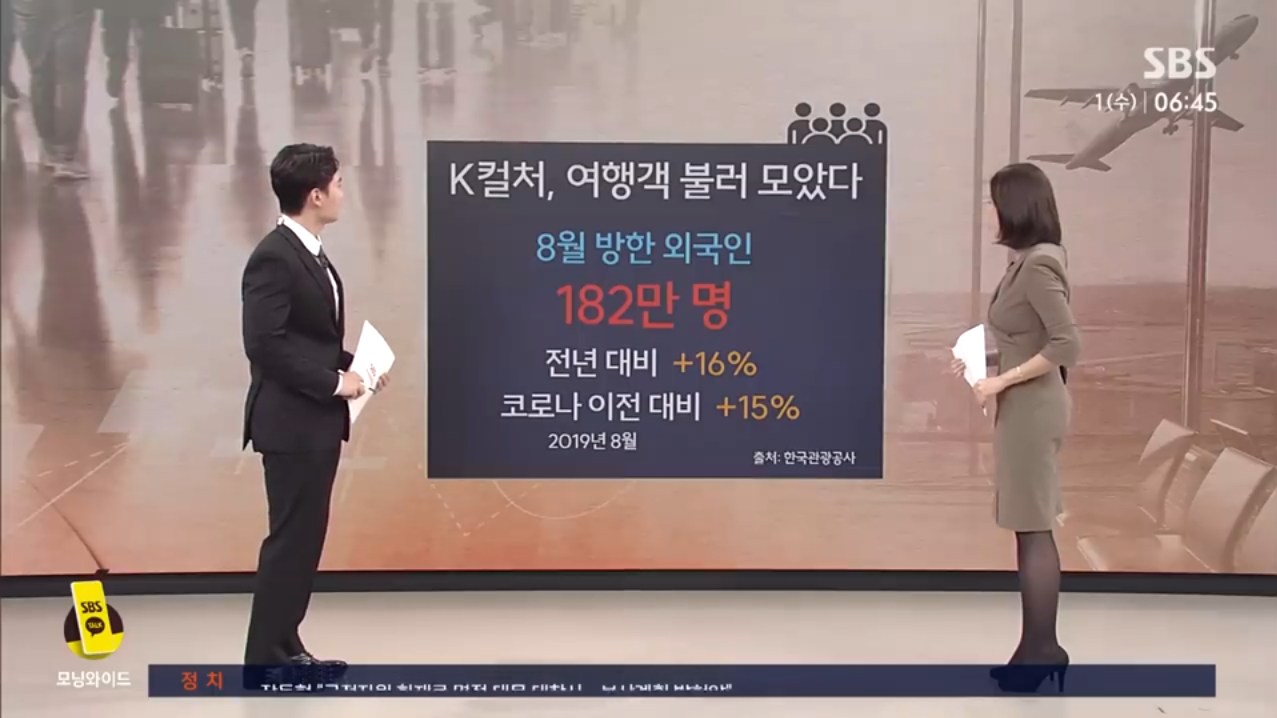 〈앵커〉수요일 친절한 경제 한지연 기자 나와 있습니다. 우리나라를 찾는 외국인 관광객들이 또 늘었다면서요?〈기자〉지난 8월 한국을 방문한 외국인 관광객은 182만 명인데요.전년 대비해서
