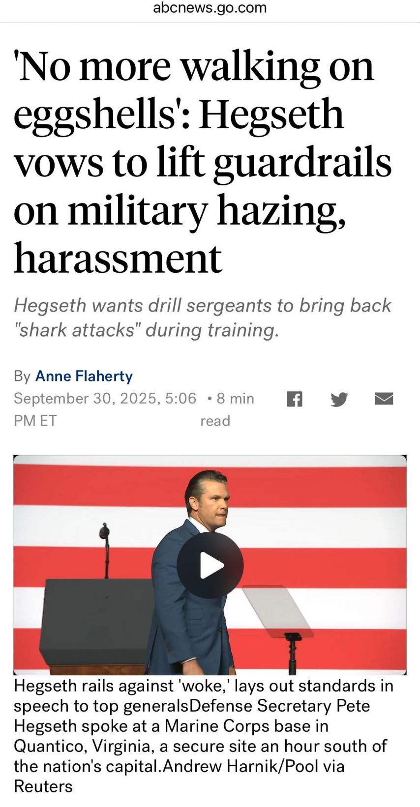 미국 국방부장관, "병사 상대 구타 공식적으로 허용하겠다" News2025. 10. 1. 19:38