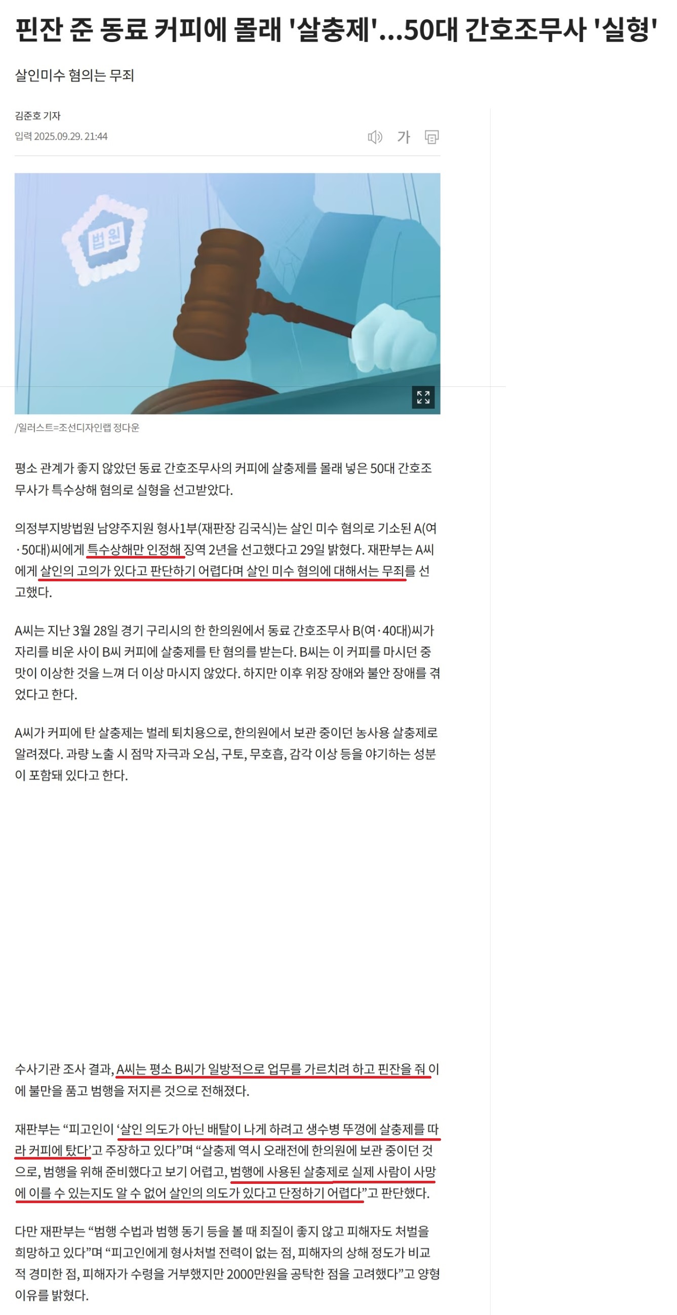 핀잔 준 동료 커피에 몰래 '살충제'...50대 간호조무사 '실형' News2025. 10. 2. 05:46