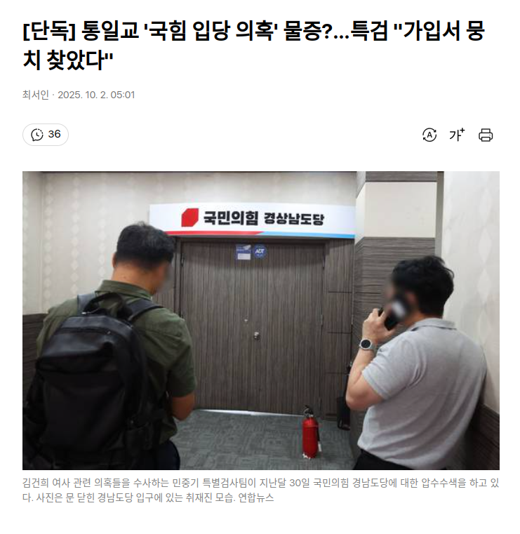 통일교 '국힘 입당 의혹' 물증?…특검 "가입서 뭉치 찾았다" News2025. 10. 2. 12:07