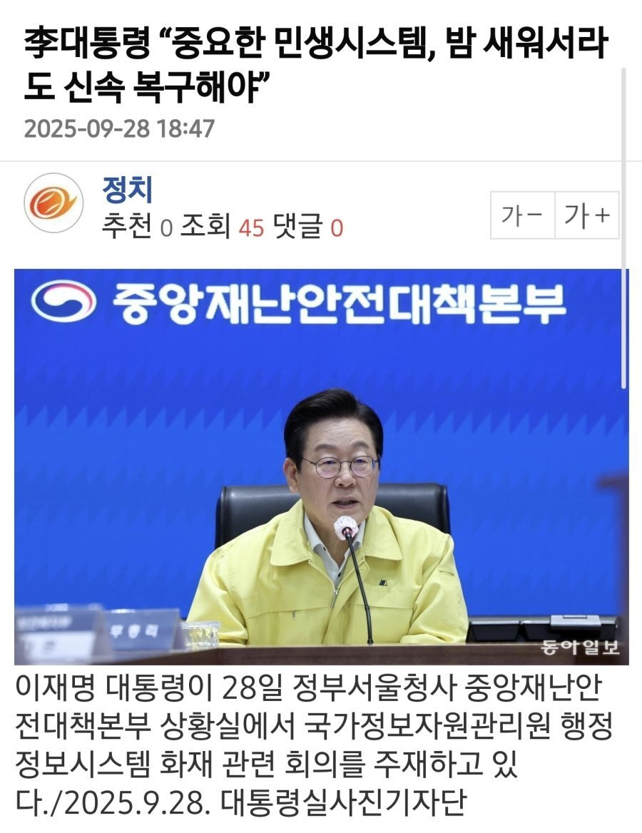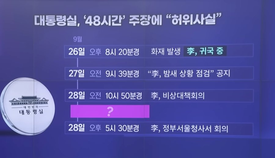 국민의힘 주진우 의원은 국정자원관리원 화재와 관련해 이재명 대통령이 피해가 속출할 때 무려 2일 동안 회의 주재도, 현장 방문도 없이 48시간 동안 침묵했다며 어디에 있었느냐고 비판했습니