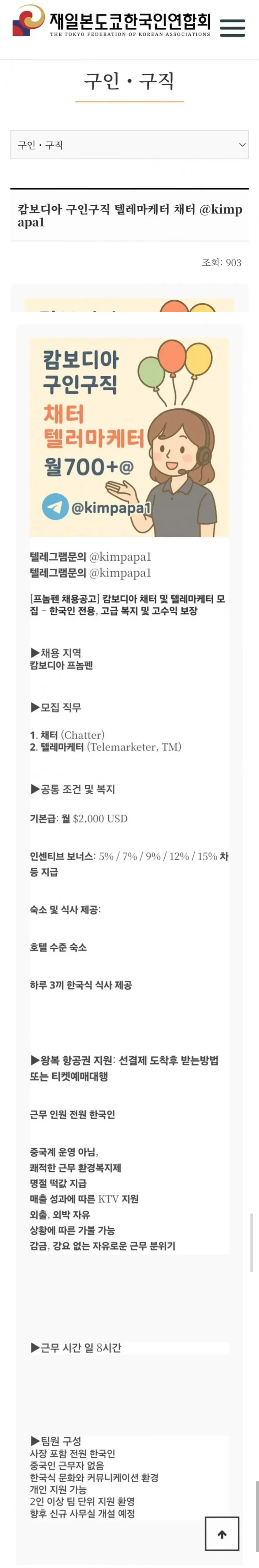 제일교포 사이트에 올라온 캄보디아 구인구직 광고, “월 1500만원, 캄보디아 TM 직원 구해요”… 이 와중에 수상한 구인 글 News2025. 10. 10. 15:27
