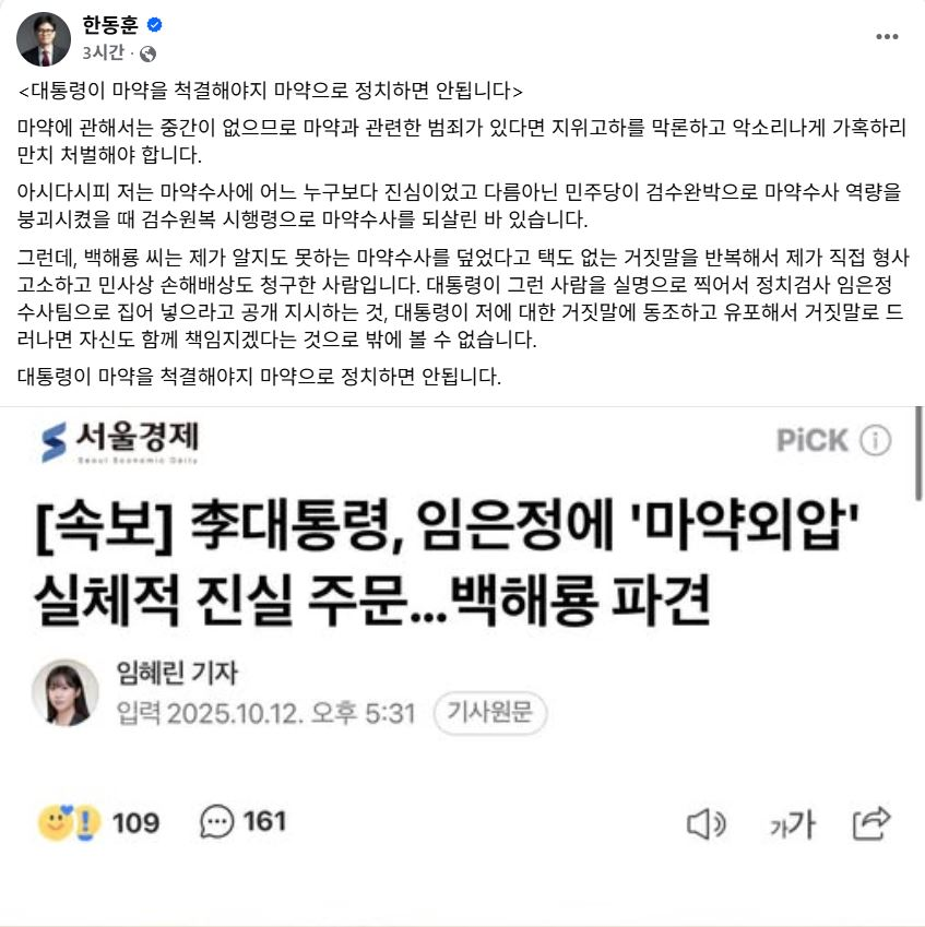 이 대통령, 임은정에 “마약수사 외압 의혹 철저히 밝혀라”…백해룡 투입, 한동훈은 잠 못 이루고 News2025. 10. 12. 22:49