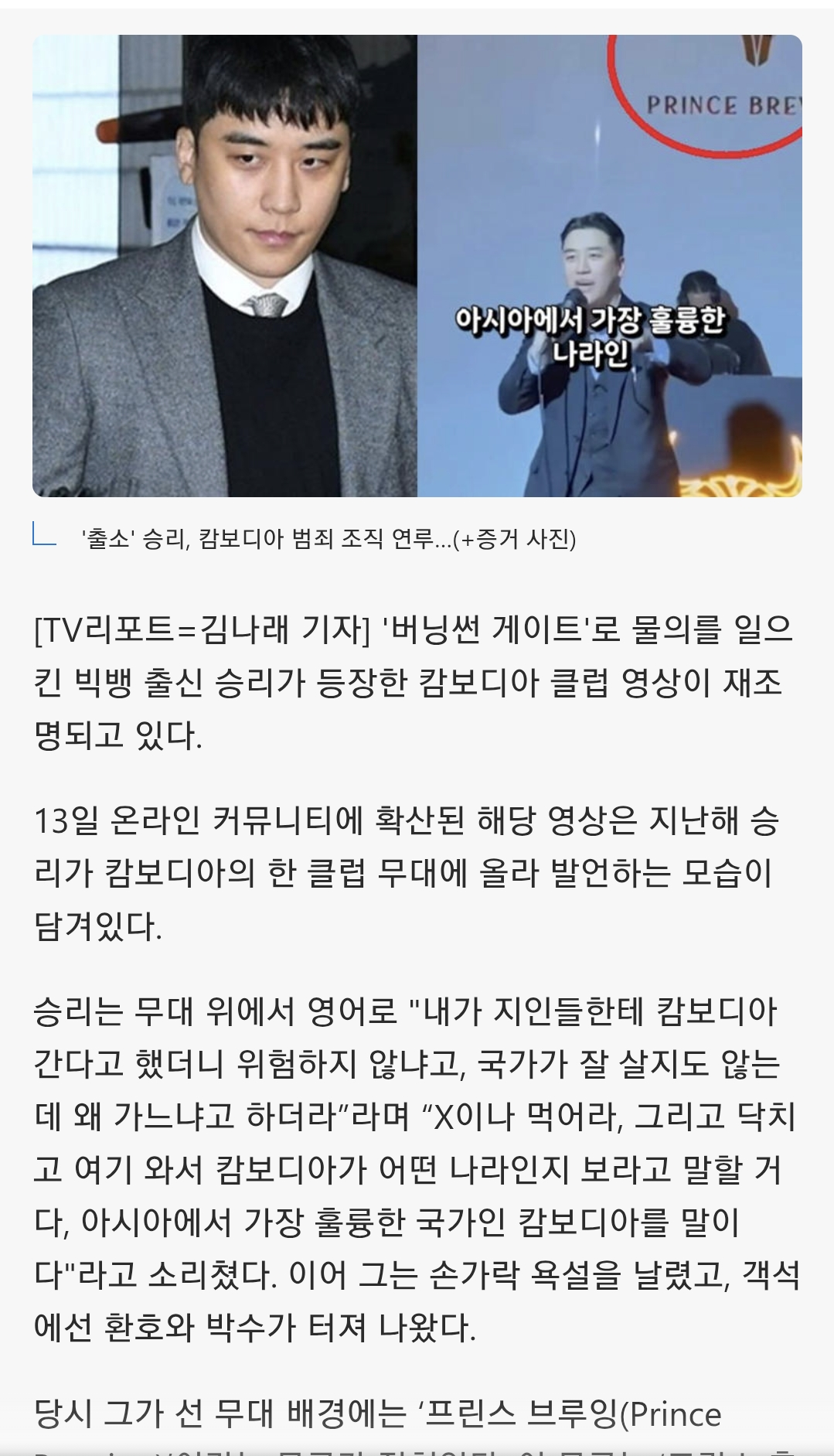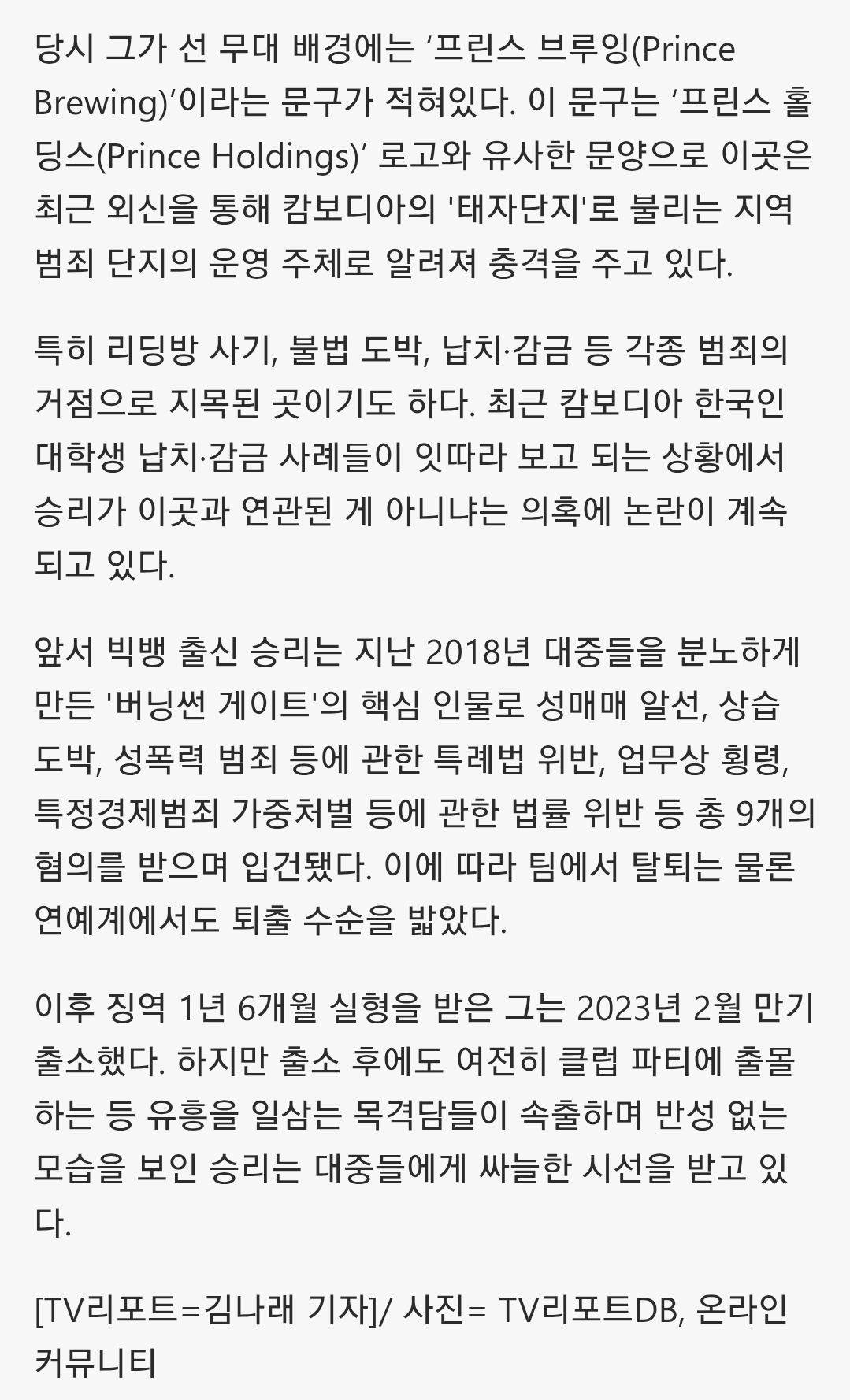 '출소' 승리, 캄보디아 범죄 조직 연루…(+증거 사진)