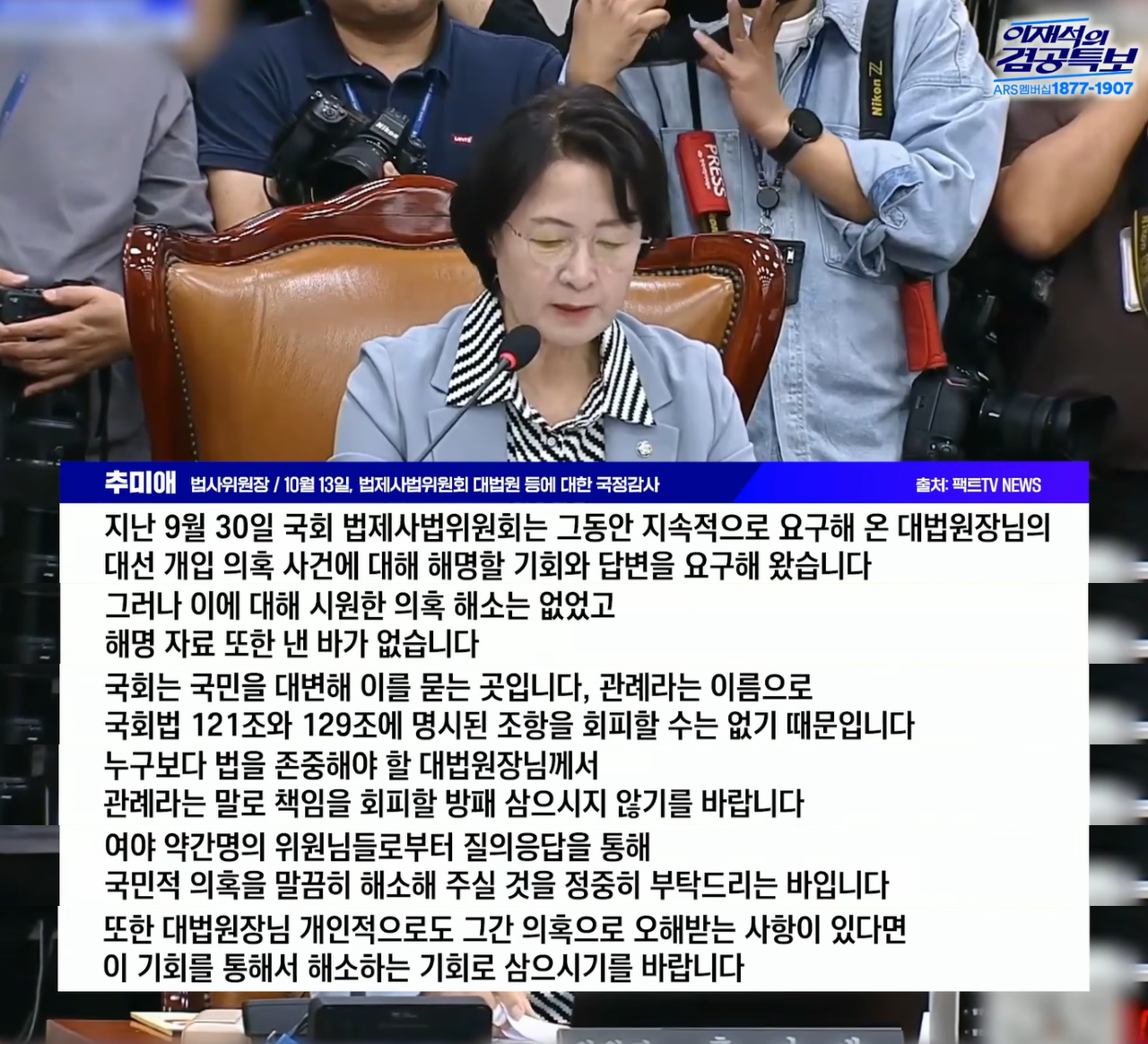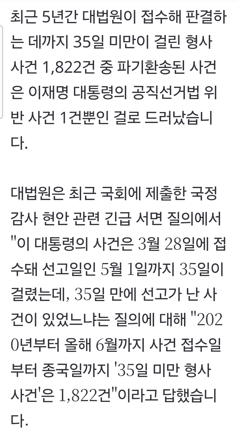 희대의 충성맹세 조희대 "35일 미만 5년간 1822건.. 파기환송은 李대통령 1건",