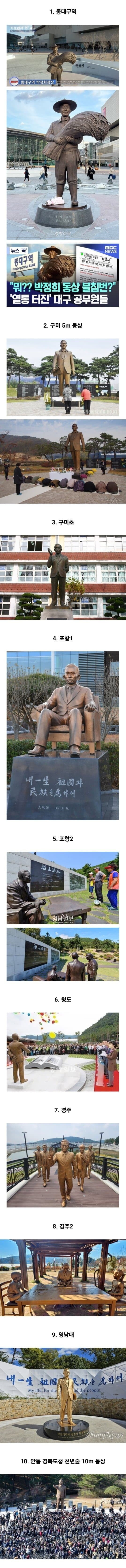 전국에 설치된 박정희 동상은 **역사적 평가의 양극화**와 **공공성 논란** 때문에 문제가 되고 있다.