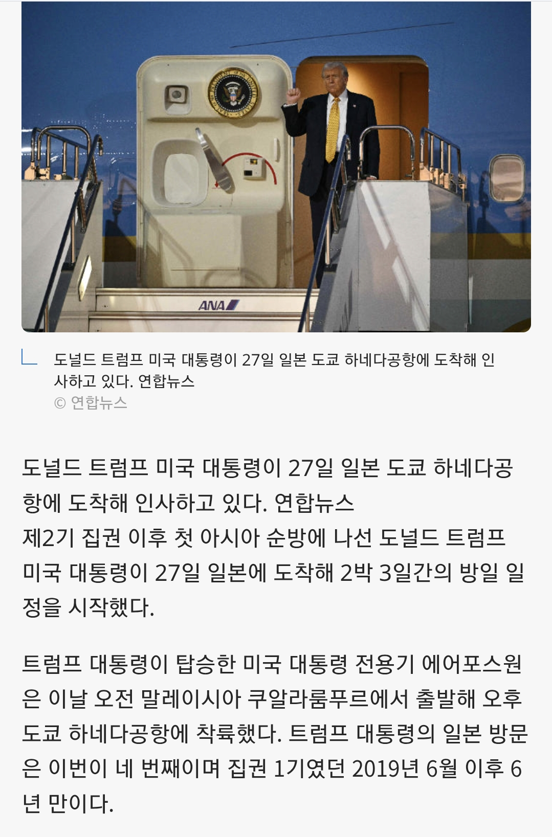 트럼프, 日 도착…내일 다카이치와 첫 정상회담, 트럼프-다카이치, 전용헬기 ‘머린 원’-美 핵항모 함께 탈듯 News2025. 10. 28. 05:03