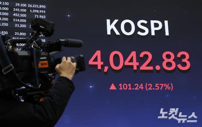연합뉴스 코스피가 사상 처음으로 4천선을 돌파하면서 국내 증시가 새 역사를 썼다. 코스피는 27일 전장보다 2.57% 급등해 4042.83에 장을 마쳤다. 이날에만 100포인트 이상 뛴 것이다. 개장 직후 4천