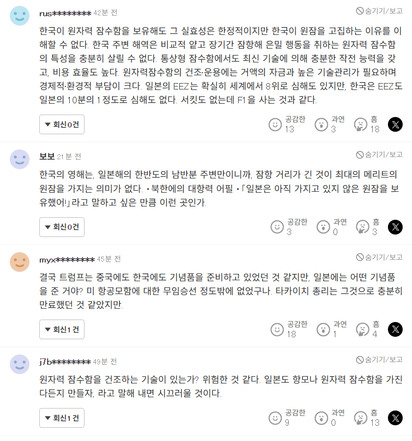 이처럼 한국의 핵추진 잠수함 승인은 미국 내에서 전략적 중요성 인식과 동시에 불확실성, 규제·우려가 혼재하는 복합적 반응을 유발하고 있습니다.