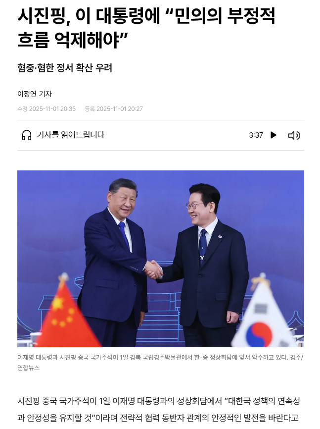 | 시진핑 과 이재명 이 경주에서 APEC 정상 회담 에서 만났다. (0) | 2025.11.02 |