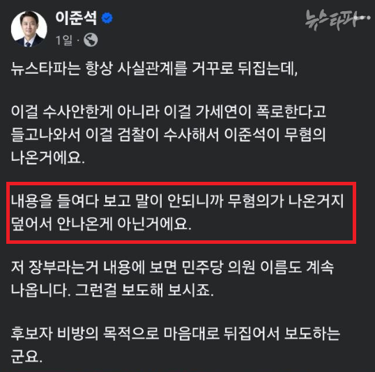 - 뉴스타파 “'이준석 접대업자' 휴대폰 내역 입수”newstapa
