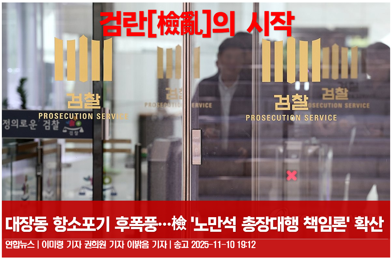 [검란(檢亂), 검찰쿠테타의 시작] – 대장동 사건 항소 포기 후폭풍 News2025. 11. 13. 12:45