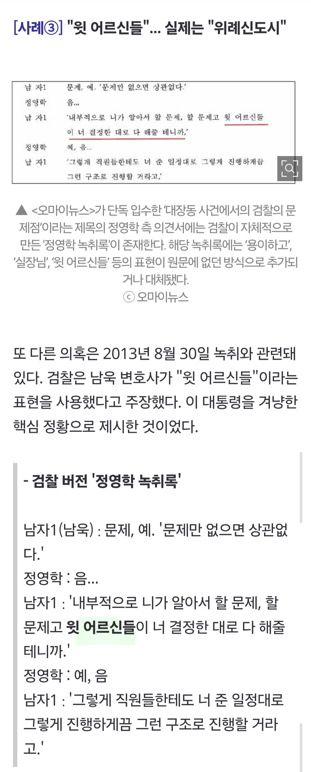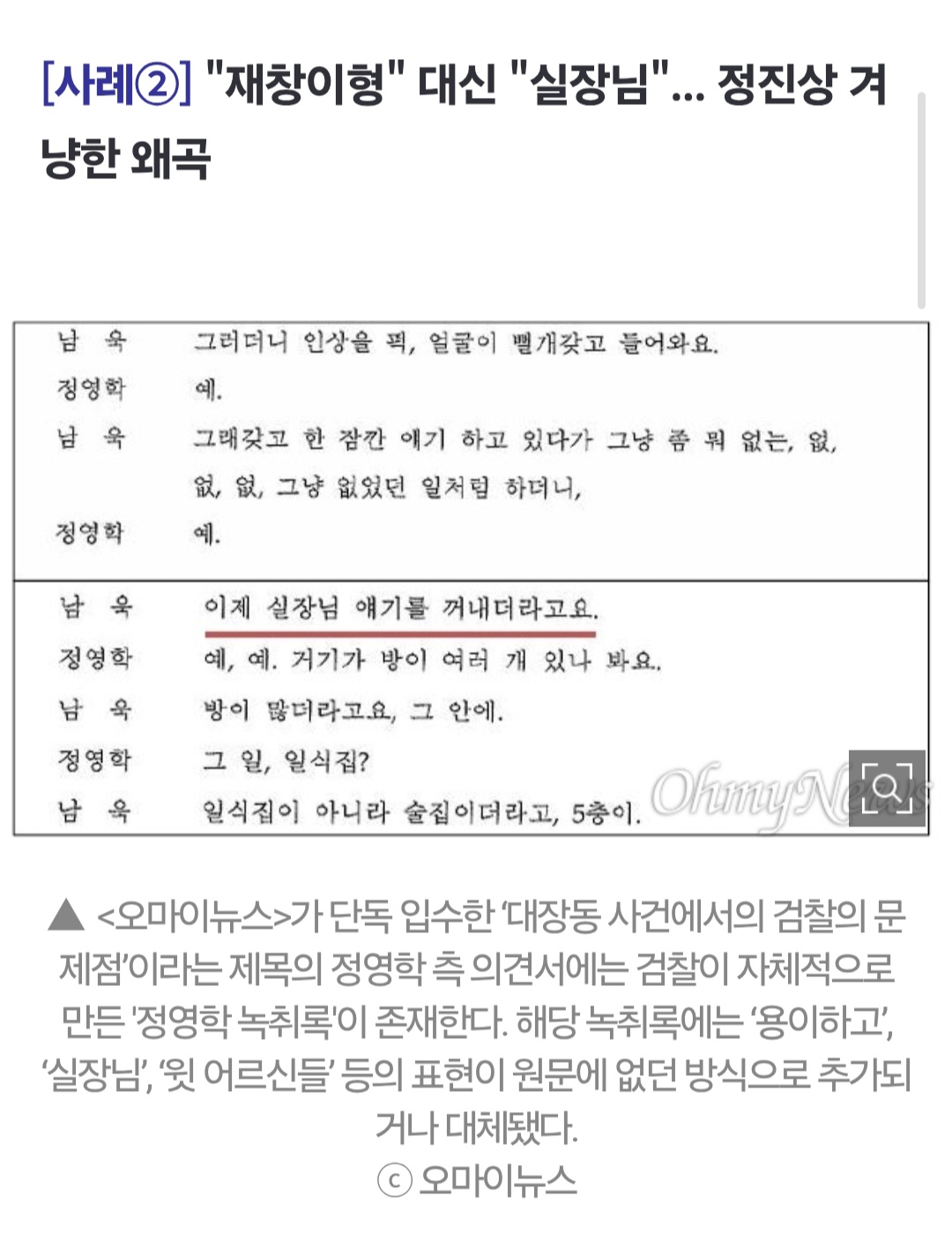 - 오마이뉴스, “정영학 녹취 검찰 조작 정황 나왔다”daum+1