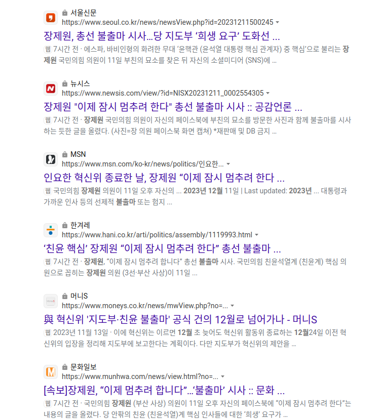 장제원 불출마 공식 시사 2023년 12월 News2023. 12. 12. 05:22