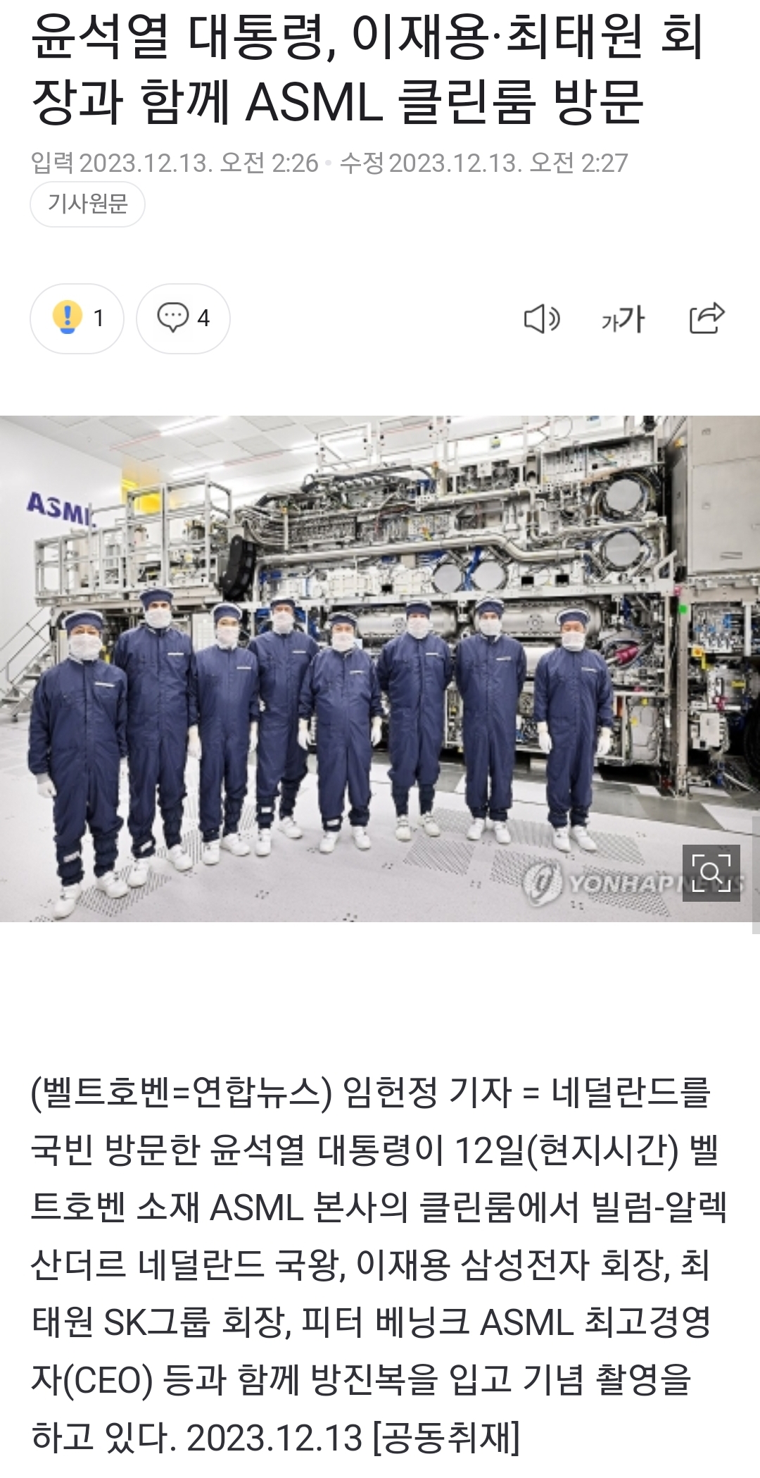 이재용 최태원과 ASML 클린룸 방문한 2023년 12월 News2023. 12. 13. 10:54
