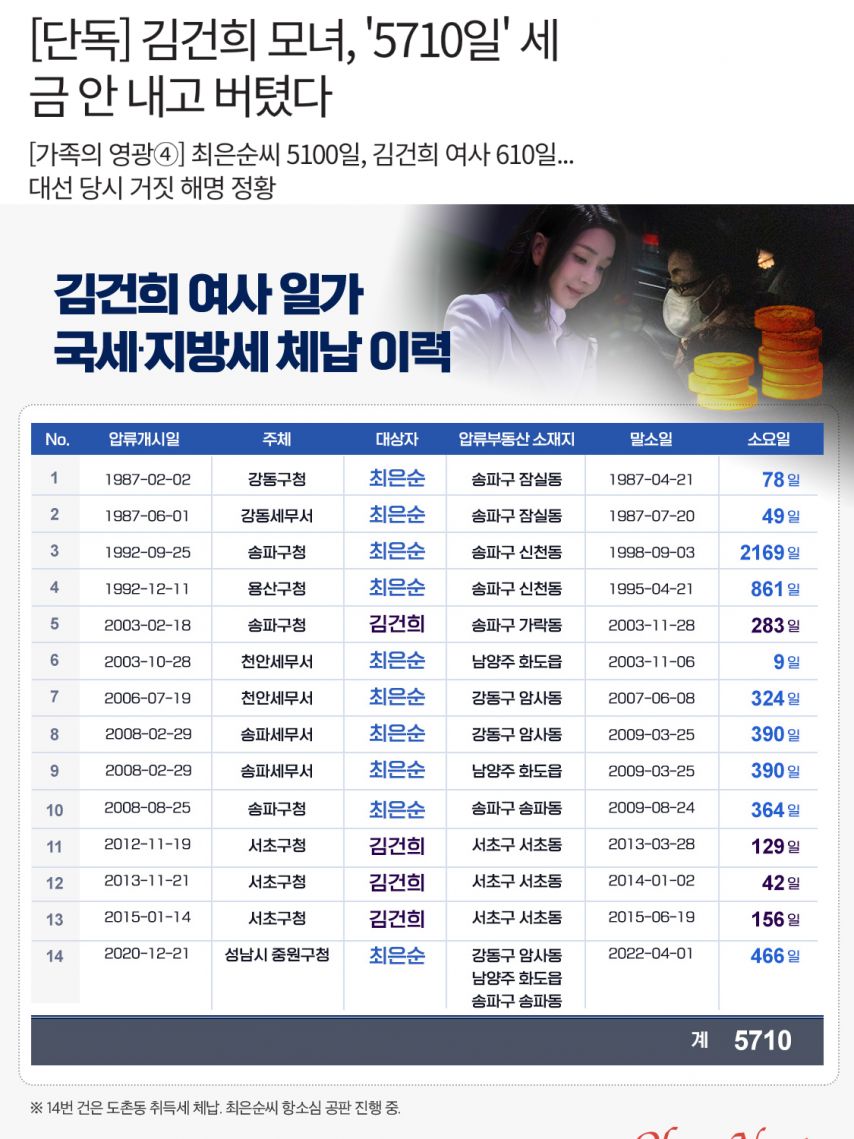 [사회] 김건희 모녀 '5710일' 세금 안 내고 버텼다.