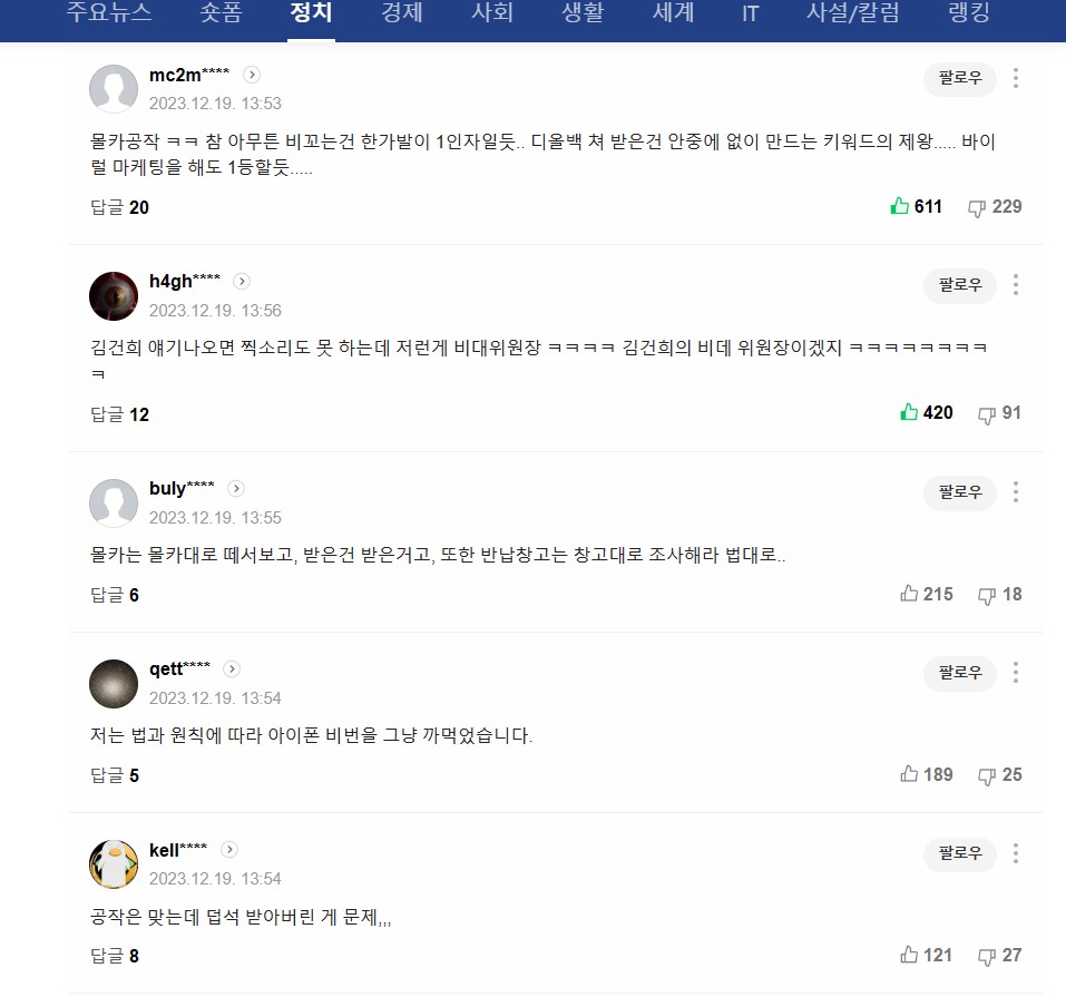 한동훈, '김건희 특검법'에 "법앞 예외 없지만 독소조항 악법" 2023년 12월 (0) | 2023.12.19 |