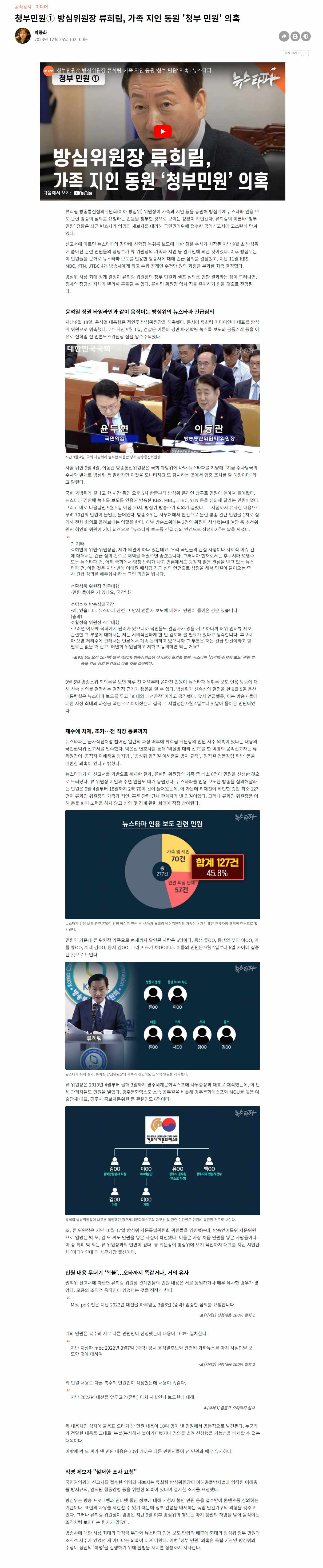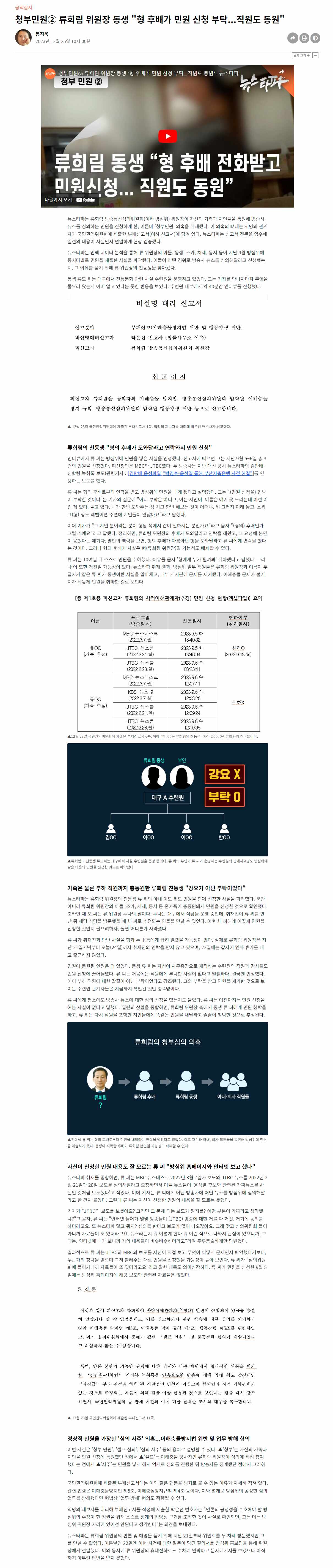 방심위원장 류희림, 가족 지인 동원 '청부 민원' 의혹 2023년 12월 News2023. 12. 27. 18:24
