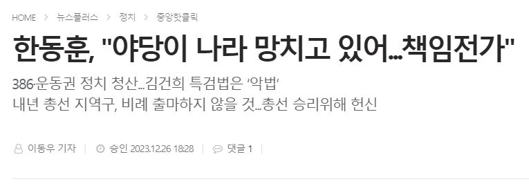 한동훈 "야당이 나라 망치고 있어" 2023년 12월 News2023. 12. 27. 18:34