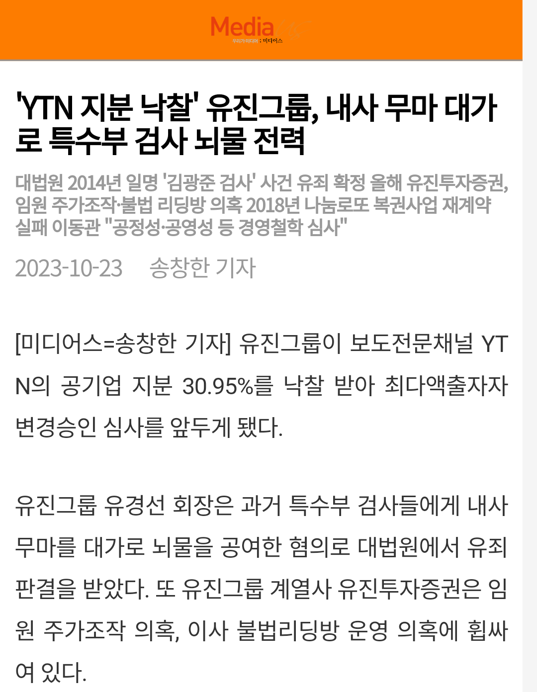 'YTN 지분 낙찰' 유진그룹, 내사 무마 대가로 특수부 검사 뇌물 전력 News2023. 12. 28. 15:08