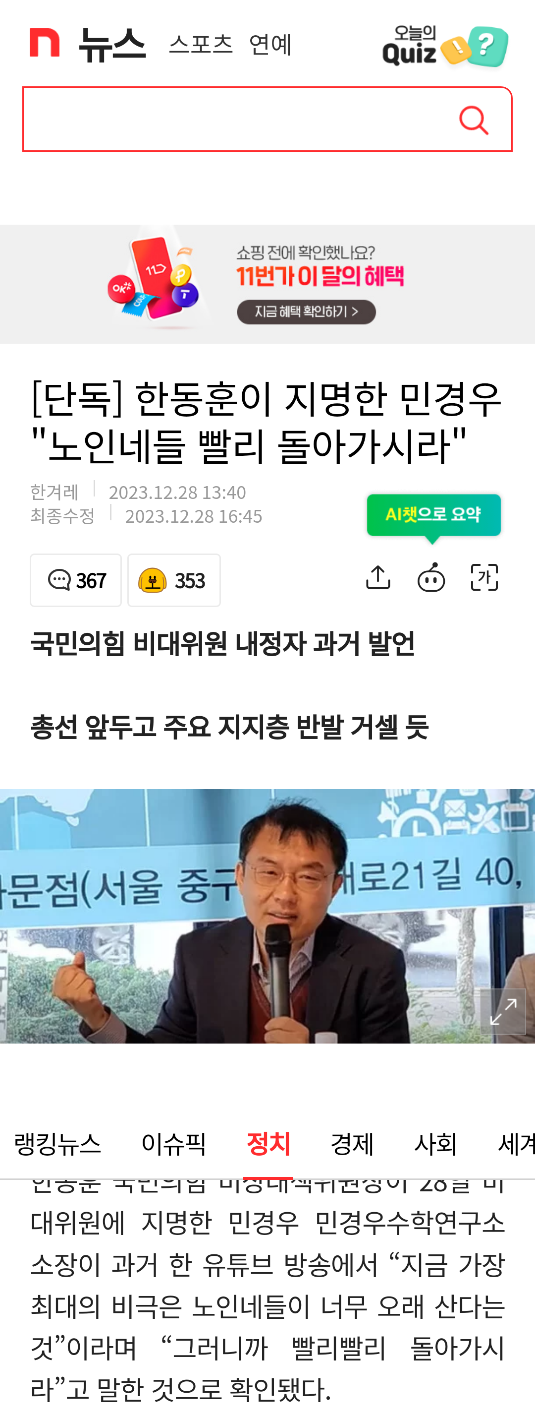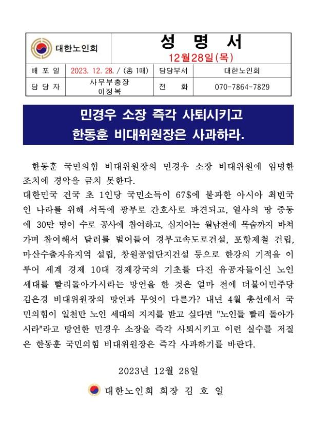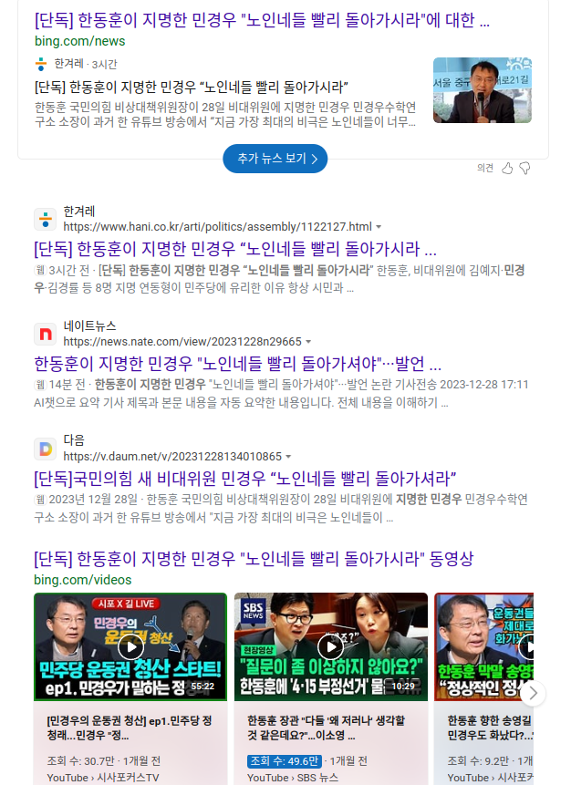 [단독] 한동훈이 지명한 민경우 "노인네들 빨리 돌아가시라" News2023. 12. 28. 17:33