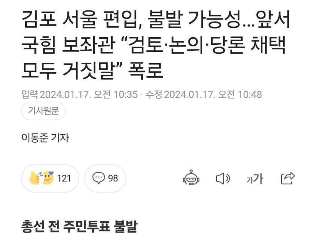 김포 서울 편입 국힘 보좌관 거짓말 폭로 News2024. 1. 18. 16:46