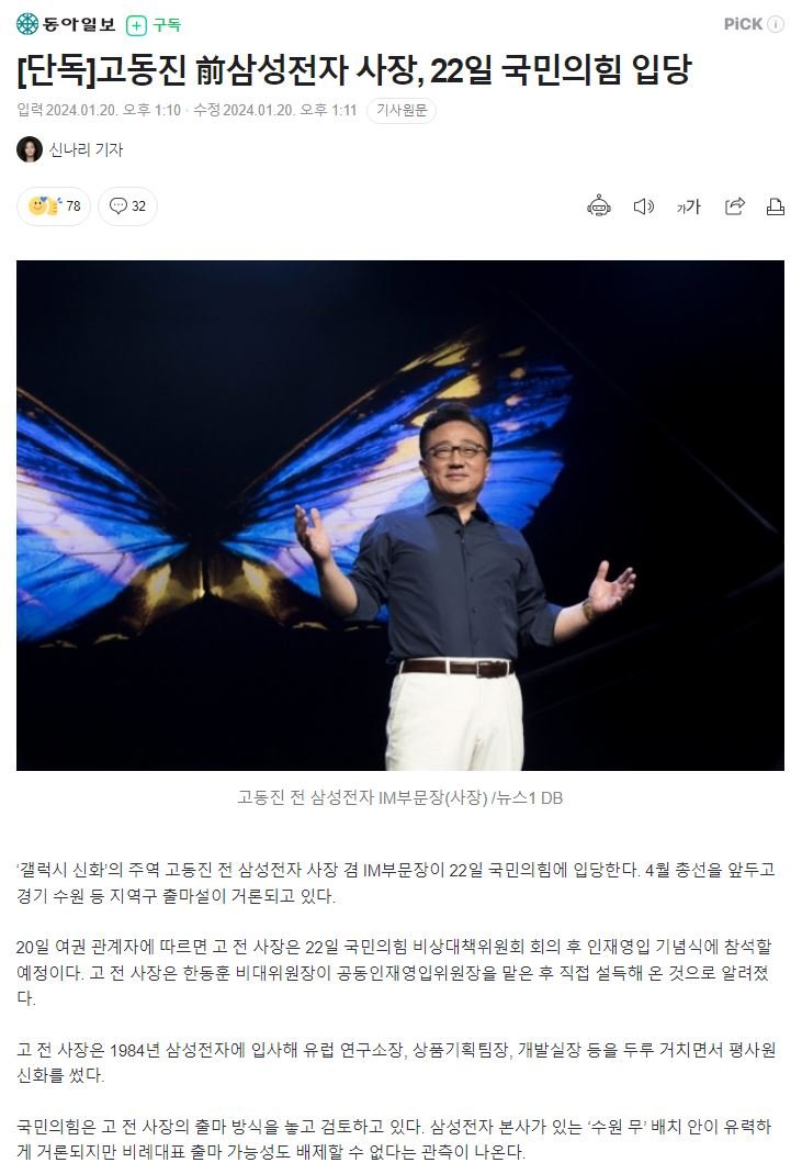 고동진, 전 삼성전자 사장 침몰하는 배에 승선할까? News2024. 1. 20. 13:38
