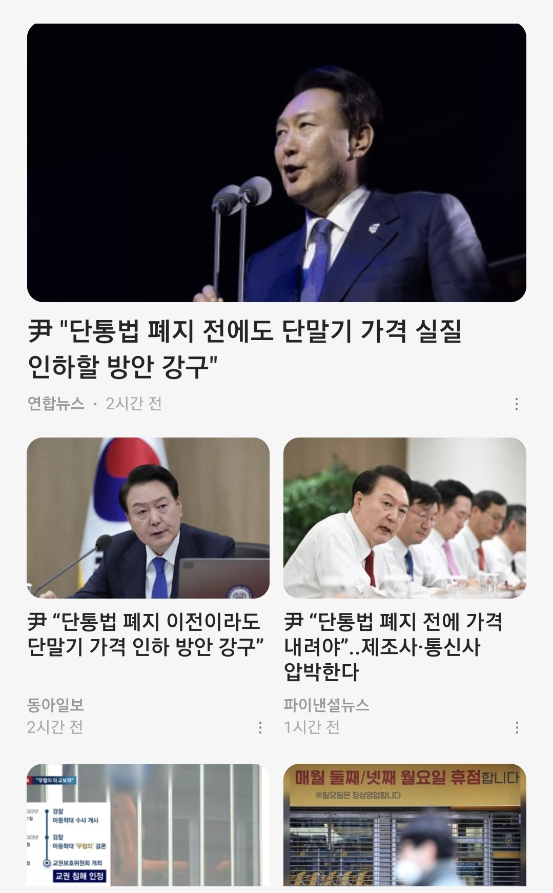 윤석열 대통령이 단통법을 언급하다.