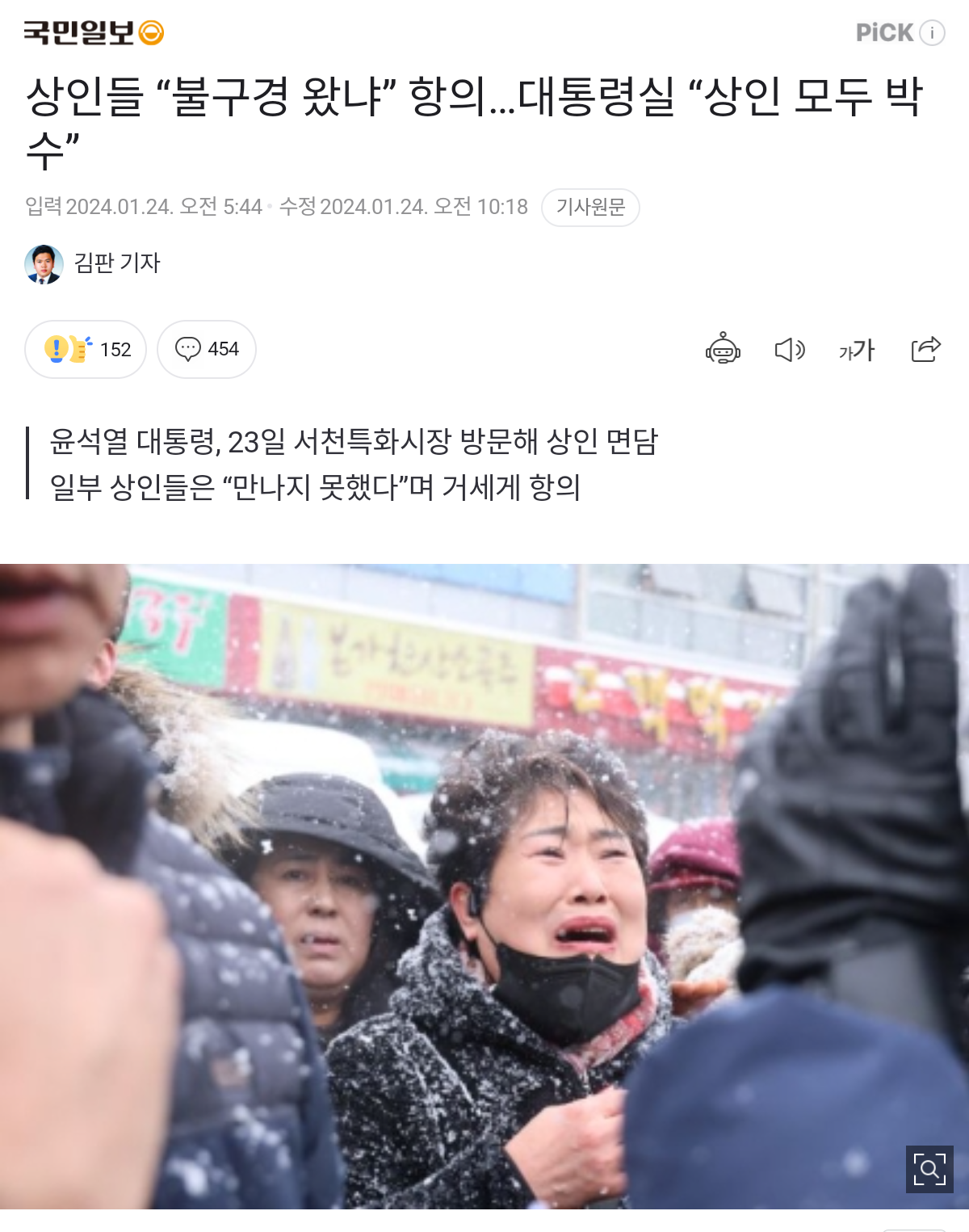 | 尹대통령 서천시장 화재현장에서 피해상인 면담? 2024년 1월 (0) | 2024.01.23 |