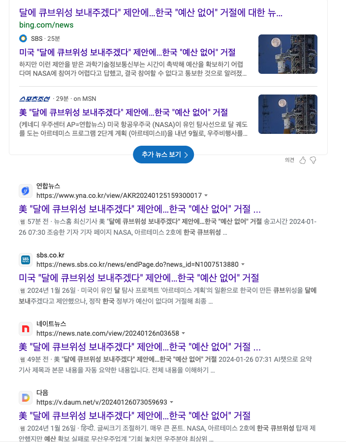 美 "달에 큐브위성 보내주겠다" 제안에…한국 "예산 없어" 거절 News2024. 1. 26. 08:30
