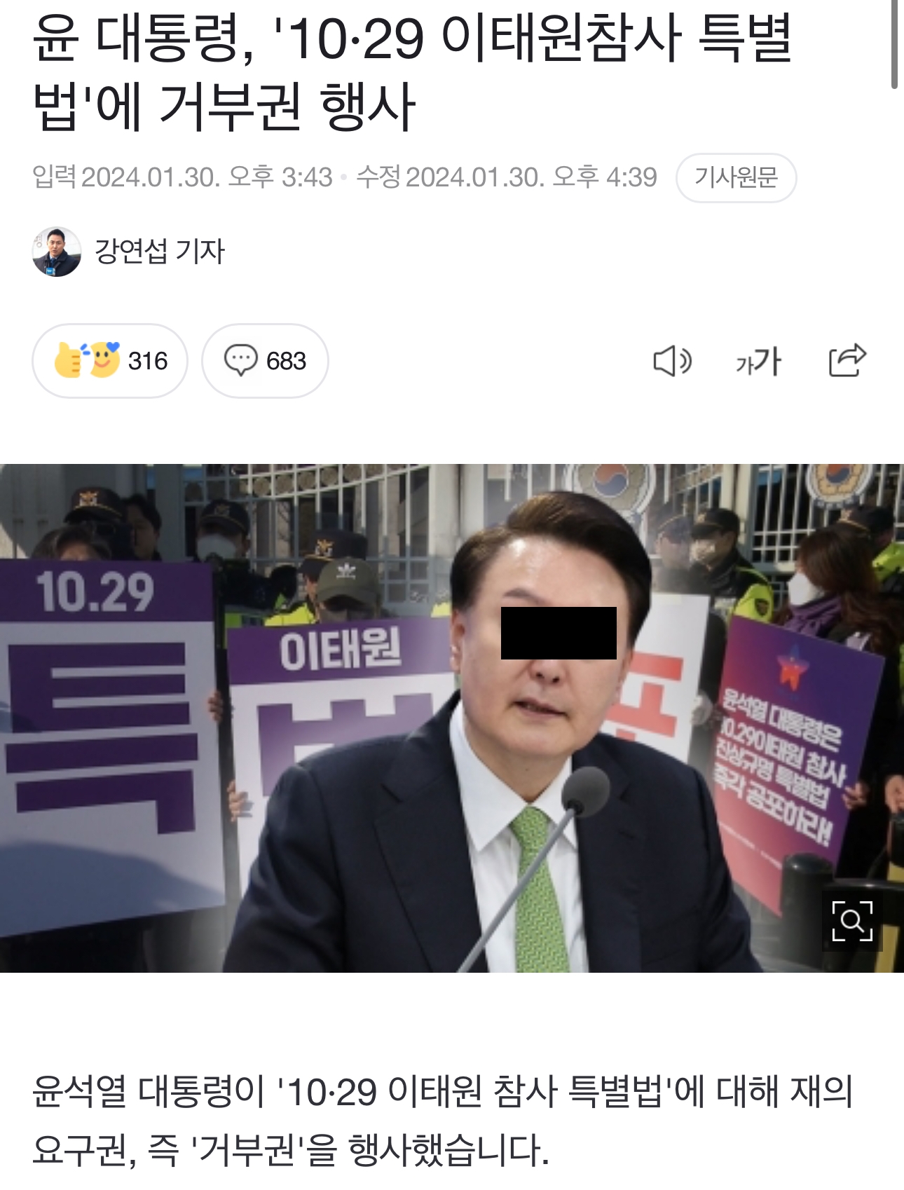 윤 대통령, 이태원 특별법에 거부권 News2024. 1. 30. 17:45