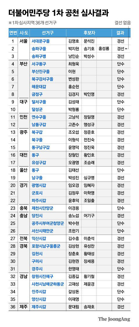 민주당, 경선지 발표