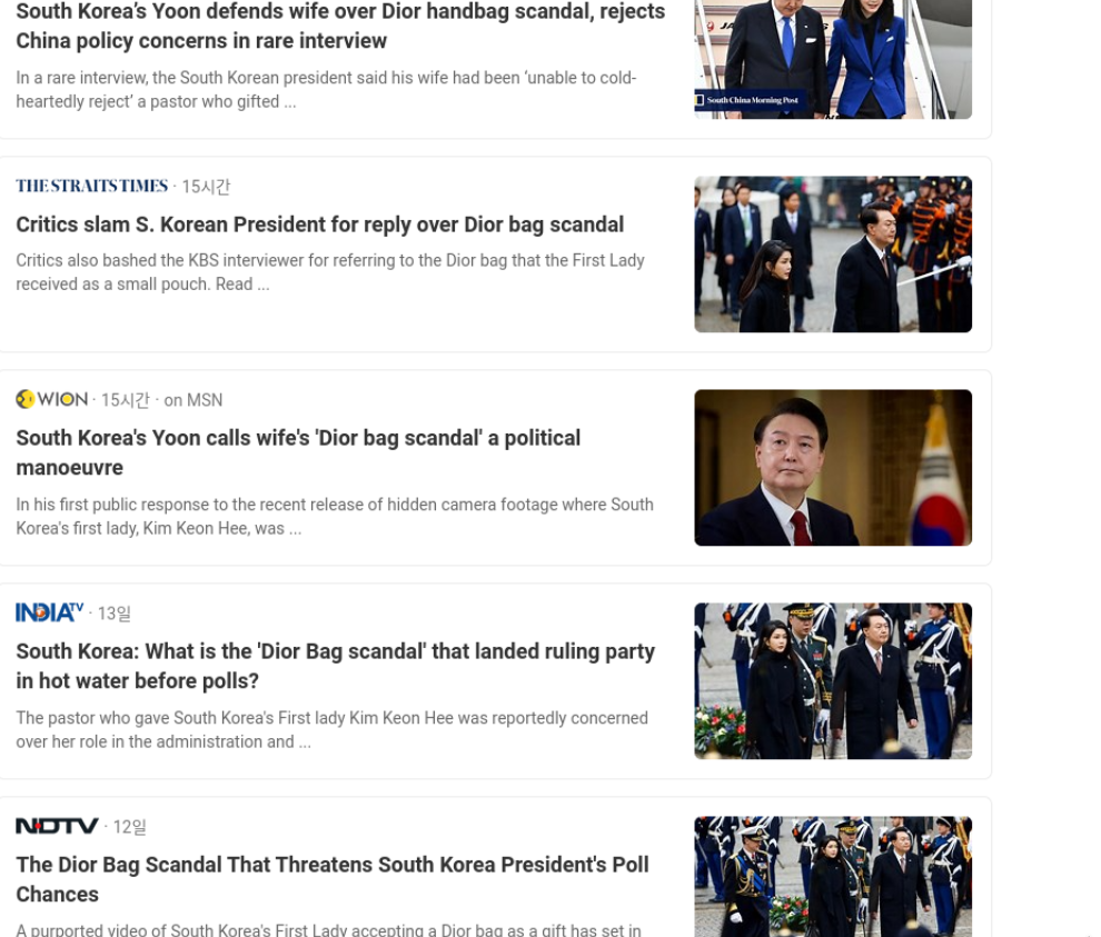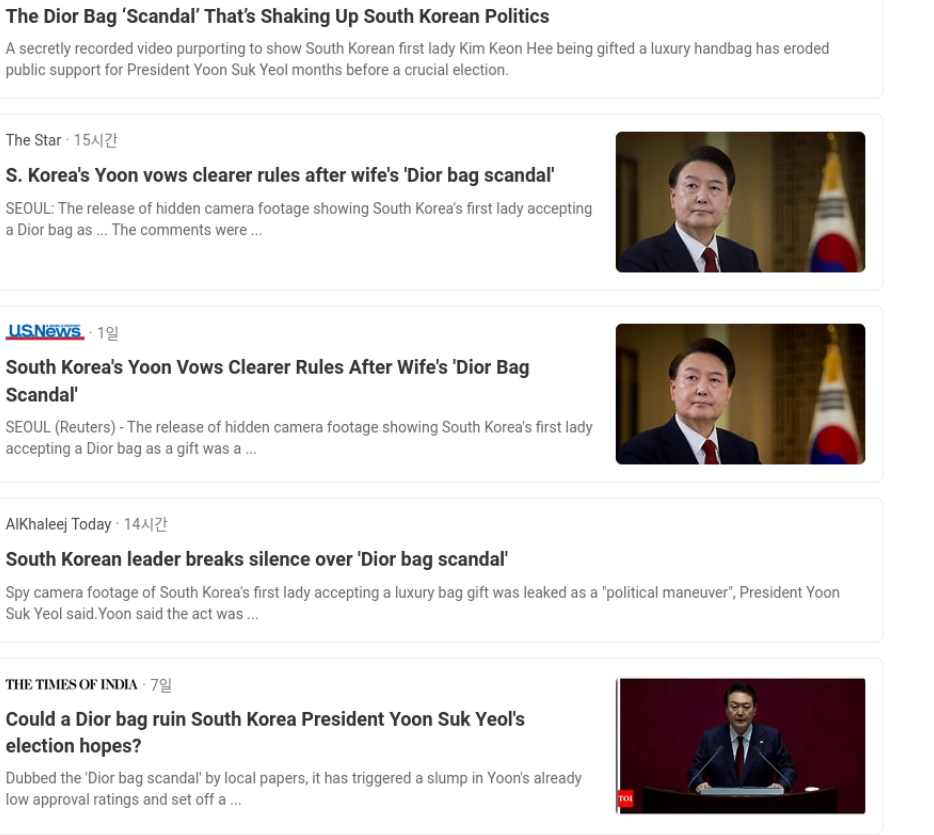 외신들 디올백 스캔들 한국 정치계를 흔들다.