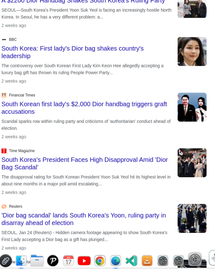 전세계 외신들 디올백 스캔들 한국 정치계를 흔들다. 2024년 2월 News2024. 2. 9. 11:51