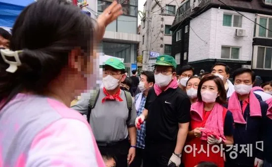 의원들 때문에 복구차량이 못 들어오자, 길막고 뭐하냐고 항의하는 시민.